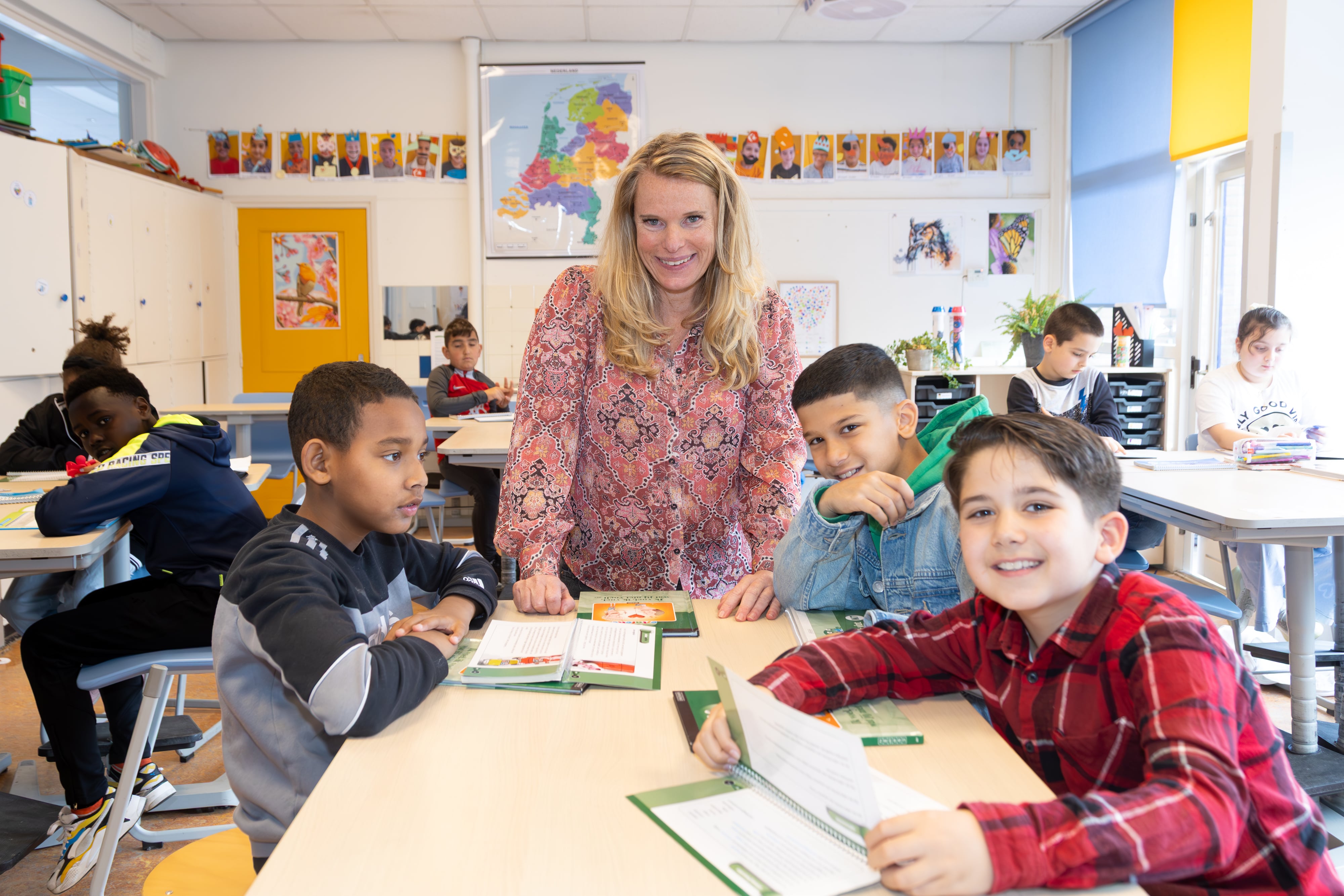 ‘Ik vind het belangrijk dat onze leerlingen met plezier naar school gaan, naar een plek waar zij zich gezien en gehoord voelen, met ruimte voor talentontwikkeling. Wij creëren die sfeer door binnen elk thema, les en activiteit aandacht te hebben voor onze vier waarden: creativiteit, vertrouwen, zorgen en zelfstandigheid. Om ervoor te zorgen dat leerlingen geïnspireerd en gemotiveerd worden en om hun leefwereld te vergroten, werken wij thematisch, betekenisvol en vakoverstijgend. Naast het lesaanbod voor taal en rekenen bieden we Burgerschap en digitale geletterdheid vakoverstijgend aan. Binnen de thema’s kunnen onze leerlingen op eigen tempo en manier leren, werken en zich ontwikkelen. Bij elk thema stellen we voor taal en rekenen een schoolbreed doel vast.